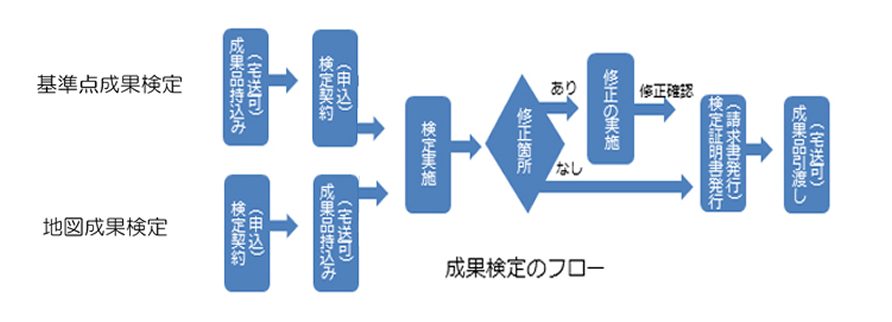 測量成果(基準点測量成果、数値地図・ GIS基盤データ等)の品質確保の観点から作業規程(準則第15条)に定められている測量成果の検定は、 第三者機関が測量成果品について詳細に点検を行い、その測量が適正に実施され、作業規程、製品仕様書等に定められた品質であるかを評価・ 判定する制度です。その結果は検定証明書、同検定記録書にまとめ測量作業機関あてに発行します。